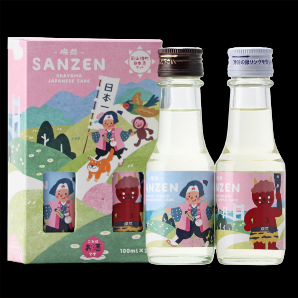 燦然の最も人気ある「純米大吟醸 雄町」と「特別純米 雄町」が、岡山の伝説 “桃太郎” のかわいらしいラベルの飲みくらべミニセットとして登場。