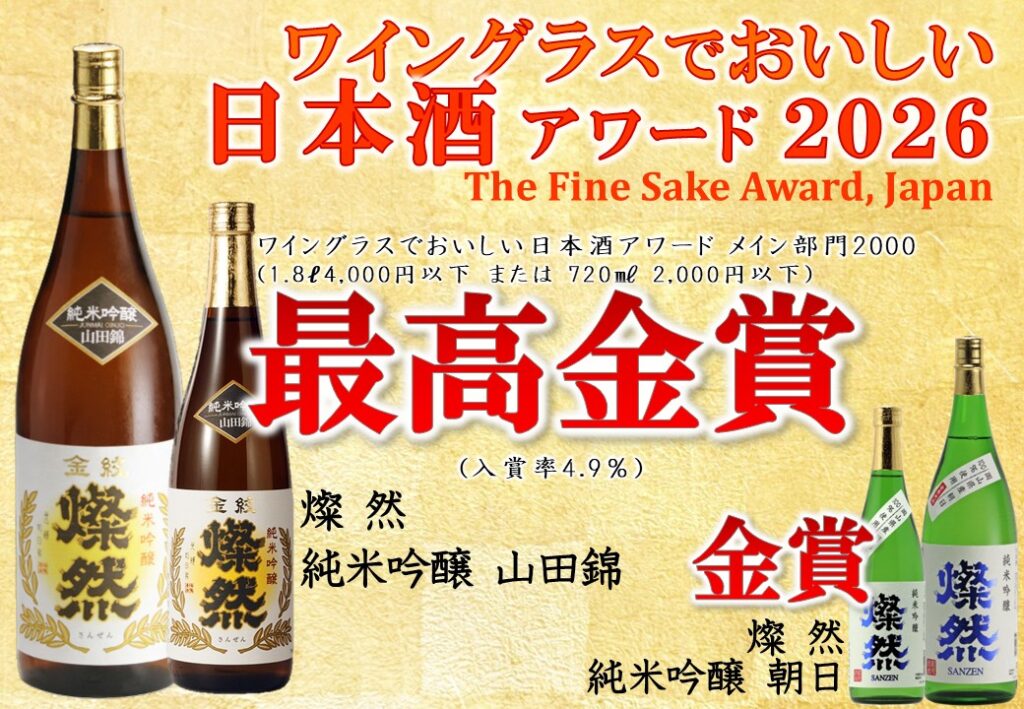 燦然 純米吟醸 山田錦が最高金賞を受賞いたしました。